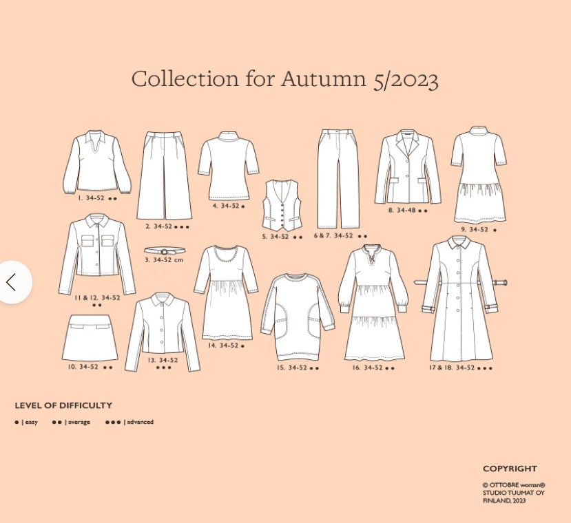 Mönster för din egensydda garderob, innehåller bra basmönster, se översikt. Damstorlekar 34-52